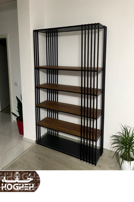 کتابخانه مینیمال چوب و فلز کد 2 چوب mdf رنگ کوره