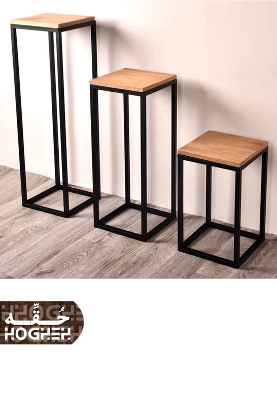 پاف سه تکه چوب و فلز چوب mdf رنگ کوره