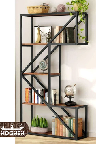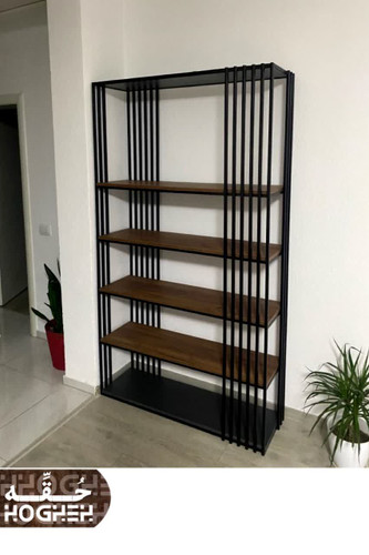 کتابخانه 8 طبقه مینیمال چوب و فلز چوب mdf رنگ کوره