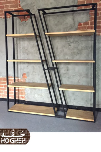کتابخانه مینیمال چوب و فلز کد 3 چوب روس رنگ کوره