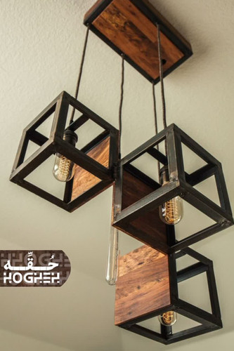 لوستر سه مکعب مینیمال چوب و فلز کد 4 ابعاد 25*25 چوب ترموود