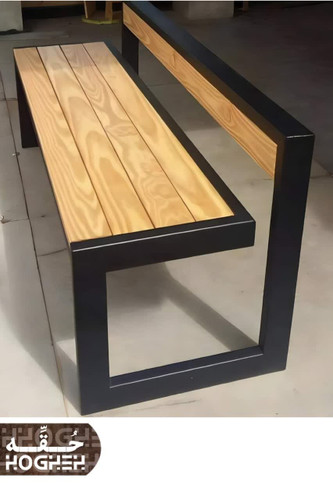 نیمکت مینیمال چوب و فلز چوب ترموود رنگ کوره