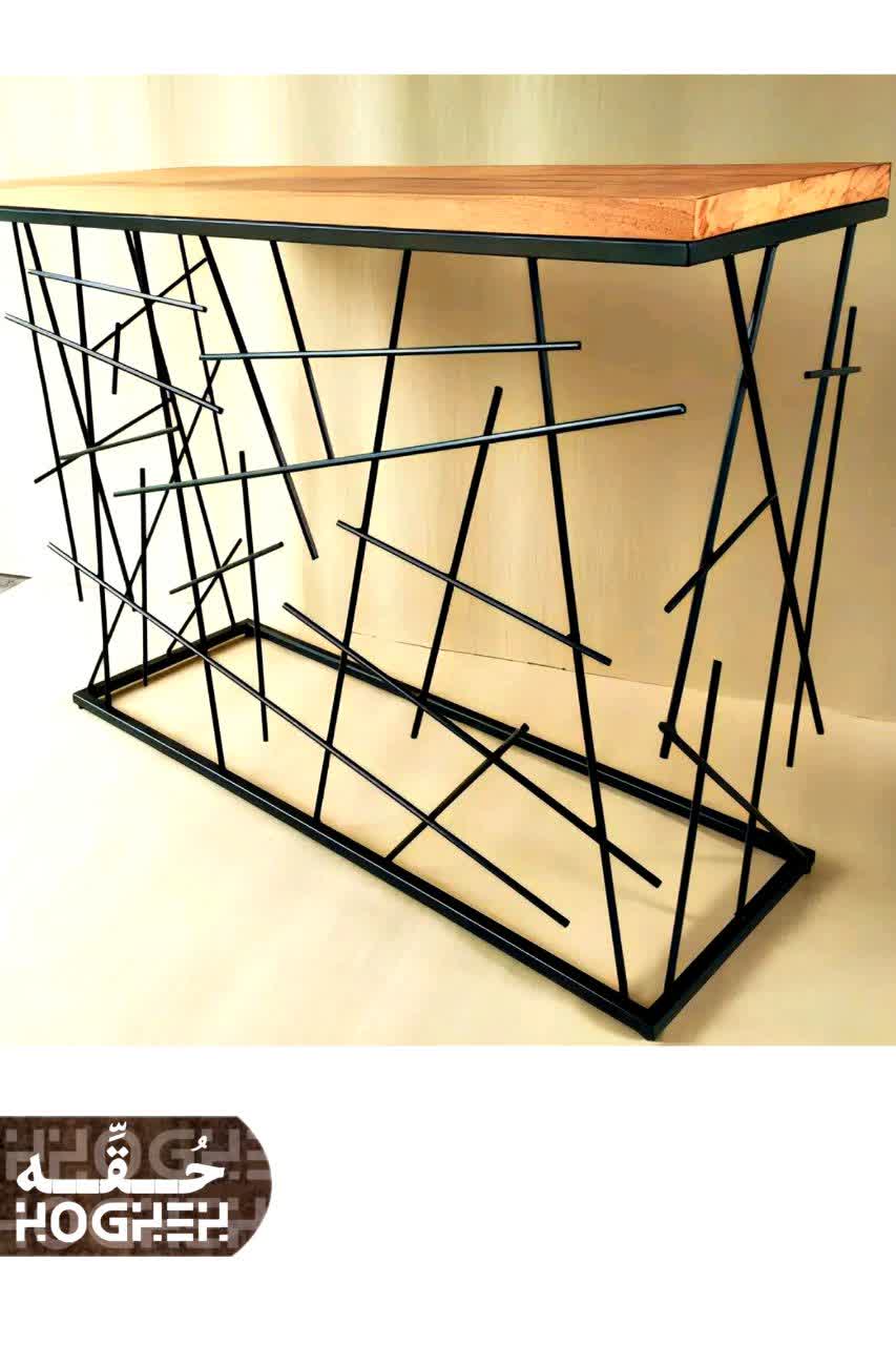 میز مینیمال طرح دار اسلپ چوب فلز چوب روس رنگ کوره